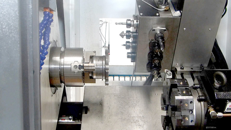 車銑復(fù)合機床是一種可以實現(xiàn)車削/銑削能夠進行旋轉(zhuǎn)工件操作(車削)和旋轉(zhuǎn)工具操作,例如銑削和交叉鉆孔。該機器通常可以識別為水平或垂直車床,在一些或所有工具位置上可以使用用于銑削和鉆孔的主軸。
