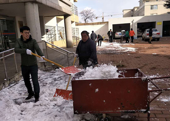 寒冬臘月,大雪飄揚(yáng)。去年臘月,龍口地區(qū)連下幾場大雪。瑞雪兆豐年,但也給人們的生活及出行帶來諸多不便。因持續(xù)低溫,龍口海岱區(qū)敬老院院內(nèi)的積雪一直沒有消融,對(duì)院中老人的安全造成極大的隱患。龍口市亨嘉智能裝備有限公司得知這一情況后,第一時(shí)間聯(lián)系了敬老院,并組織了公司員工去敬老院掃雪,幫助解決老人們的安全隱患。