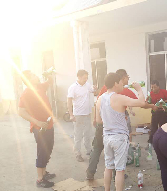 ↓夕陽西下,左右開弓對瓶吹,盡顯山東好漢的爽朗本色!